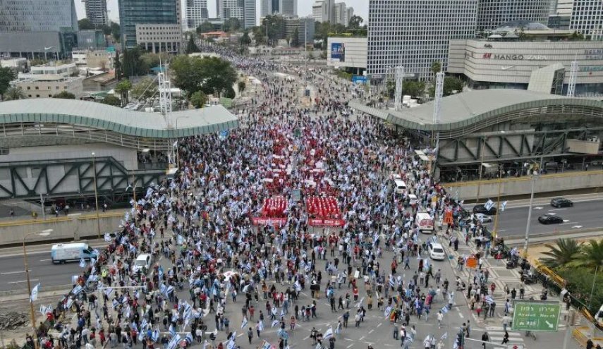 İşğal olunmuş torpaqlardakı etirazların davamında minlərlə sionist köçkün bazar günü (dünən) axşam da ardıcıl olaraq 37-ci həftədə növbəti dəfə Tel-Əviv küçələrinə çıxıb və məhkəmə dəyişiklikləri ilə bağlı Netanyahu kabinetinin qalmaqallı layihəsinin qəbul olunmasına etiraz ediblər.