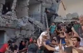Bu görüntüdə fələstinli uşağın cansız bədəninin sionist işğalçılarının Qəzzənin qərbinə hücumları zamanı yaranmış dağıntılar altından çıxarılma anını görürsüz.