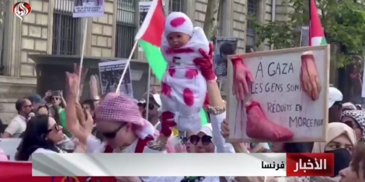 Xəbər agentliyinin müxbiri hesabatının ardında nümayişçilərin əllərindəki plakatlara işarə edərək deyib: “Fransızlar deyirlər ki, fələstinlilərin əl və ayaqları tikə-tikə olunub və heç bir beynəlxalq yarışda iştirak edə bilmirlər. Onların uşaqlıq dövrü israilli cinayətkarlar vasitəsi ilə aradan gedib. Nümayişdəki nümayişçilər minlərlə sual soruşurlar. Məsələn, bu plakat deyir: Bizə ukraynalı və fələstinli uşaqlar arasında bir fərq göstərin!”
